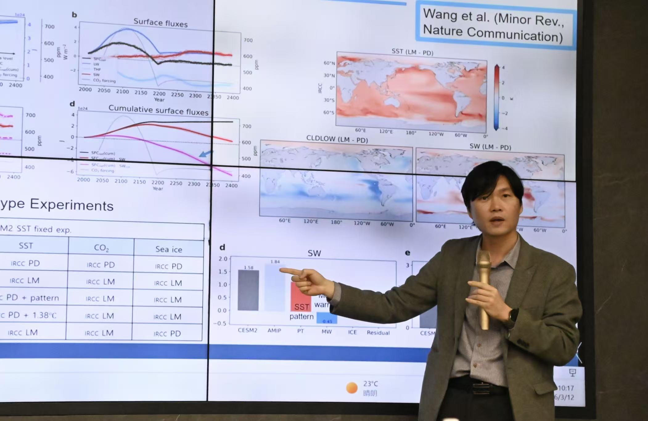陈文教授对Jong-Seong Kug教授团队的到来表示热烈欢迎,并简要介绍了本次双边学术研讨会的背景与主旨。他强调,在全球气候变化大背景下,深化中韩两国高校在大气科学领域的持续交流与务实合作具有重要意义。在随后的主题报告环节,陈文教授与Jong-Seong Kug教授先后就各自实验室的近期研究进展作了汇报。陈文教授详细介绍了云南省季风与极端气候灾害国际联合实验室就建立以来取得的阶段性成果;Jong-Seong Kug教授则全面分享了首尔大学地球系统实验室在气候系统变化与预测研究方面的前沿工作。