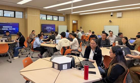 本次沙龙培训内容重点聚焦三个核心环节:课前如何利用AI辅助进行高效备课,课中如何开展人机互动以实现智慧教学,以及课后如何依托AI进行辅助学习从而达到提质增效的目的。本次沙龙注重实践导向,采取“即学即练、学以致用”的线下工作坊模式。参会教师在主讲人的现场专业指导下,使用自带电脑设备进行了全程实操训练。在培训过程中,主讲人重点展示并讲解了“雨课堂”最新推出的“教学百宝箱”功能。该功能核心支持HTML文件无缝嵌入雨课堂课中教学场景,能够轻松打造闯关式分层练习、趣味互动习题、可视化演示课件等多样化交互式教学内容。通过具体的案例演示与同步动手演练,教师们深入体验了“雨课堂”应用相关AI工具的实际操作流程,并探讨了将其应用于各自学科教学中的可行路径。