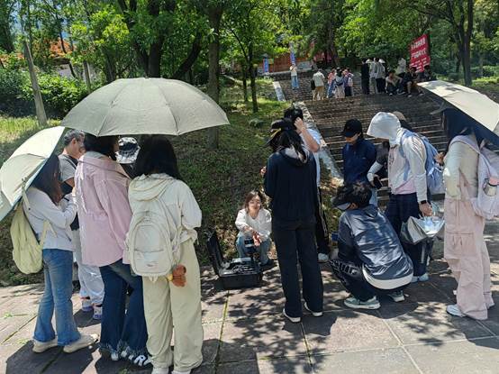 在崇圣寺,南方测绘技术人员指导同学们实地布设像控点,运用RTK技术进行像控点测量,并使用无人机开展倾斜摄影测量。同时,实习队伍还使用架站式及手持式激光雷达扫描仪两种设备对古建筑进行点云数据采集,为内业处理提供详实的数据支持。