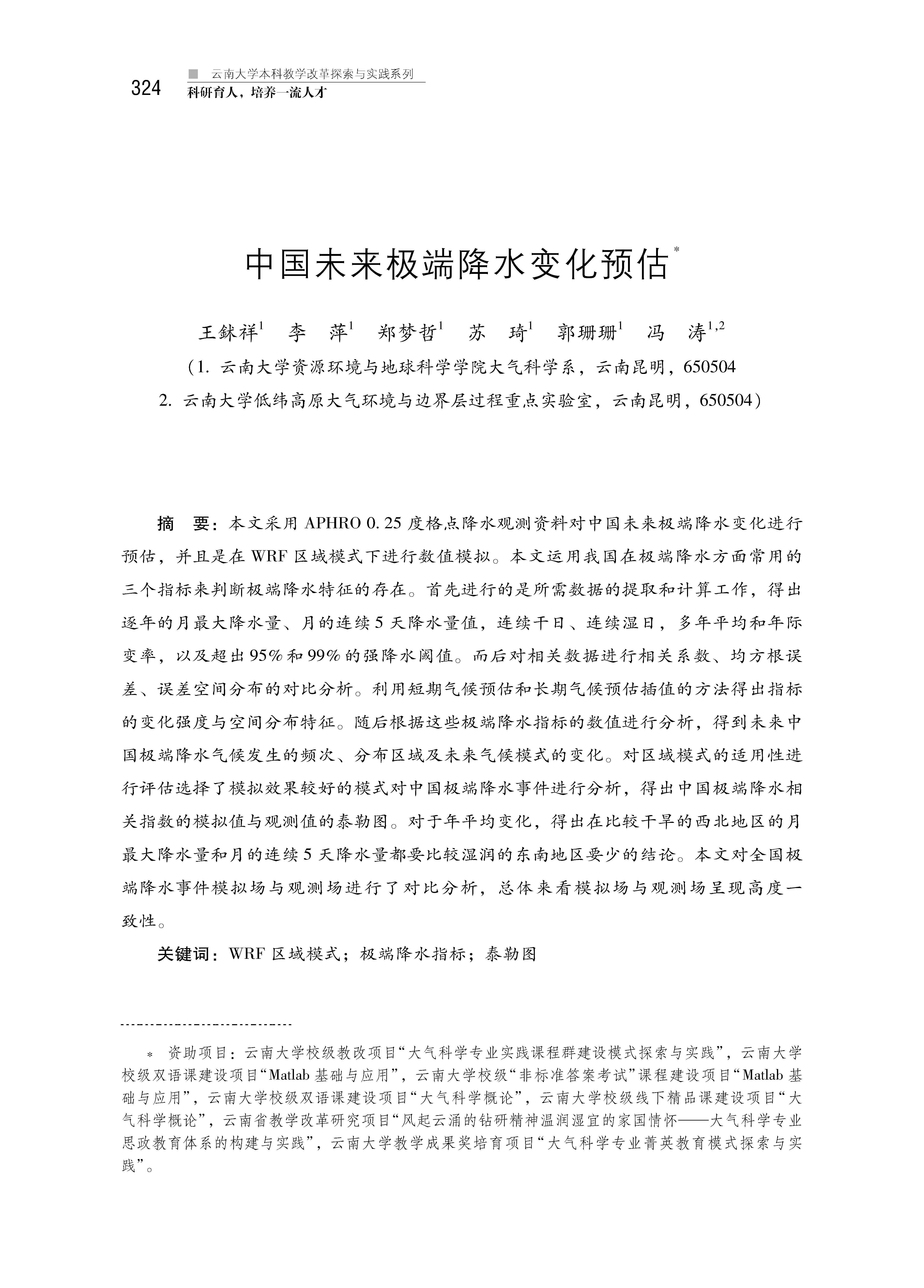 王鉥祥等的《中国未来极端降水变化预估》顺利发表!